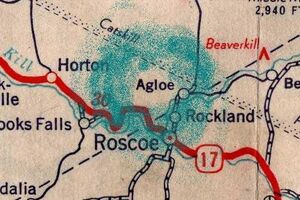 Agloe es un lugar ficticio del Condado de Delaware, el cual finalmente se convirtió en un punto de referencia real. Está situada teóricamente en una intersección de carreteras sin asfaltar cerca de Roscoe, Nueva York.  Es un un anagrama de las iniciales de sus creadores.